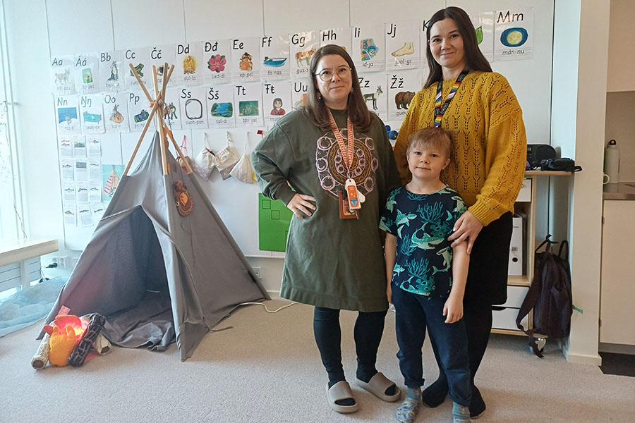 Saamenkielinen ryhmä on retkeilevä ryhmä, joka pakkaa reput selkäänsä monta kertaa viikossa ja suuntaa Keskuspuistoon. Ryhmän arjessa näkyvät vahvasti saamelaiset kulttuuriarvot kuten identiteetin vahvistuminen, yhteisöllisyys, luontoyhteys, perinteiset elinkeinot ja taidot, sukupuolten välinen tasa-arvo ja ihmisyys, rauha ja sovinnollisuus sekä monikulttuurisuus.