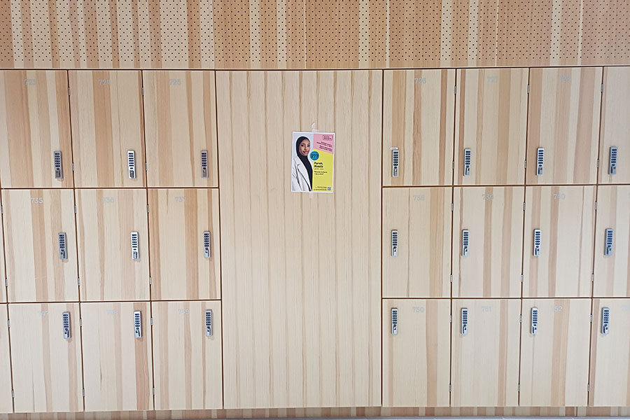 Yläkoululaisten lokeroita vitoskerroksessa.