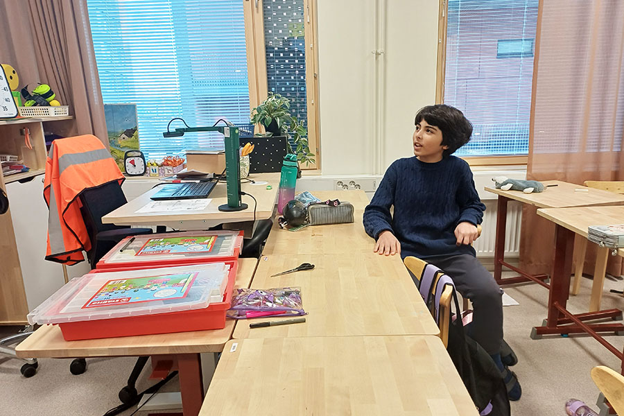 Kolmasluokkalainen Rayan Kiviniemi esittelee omaa luokkaansa.